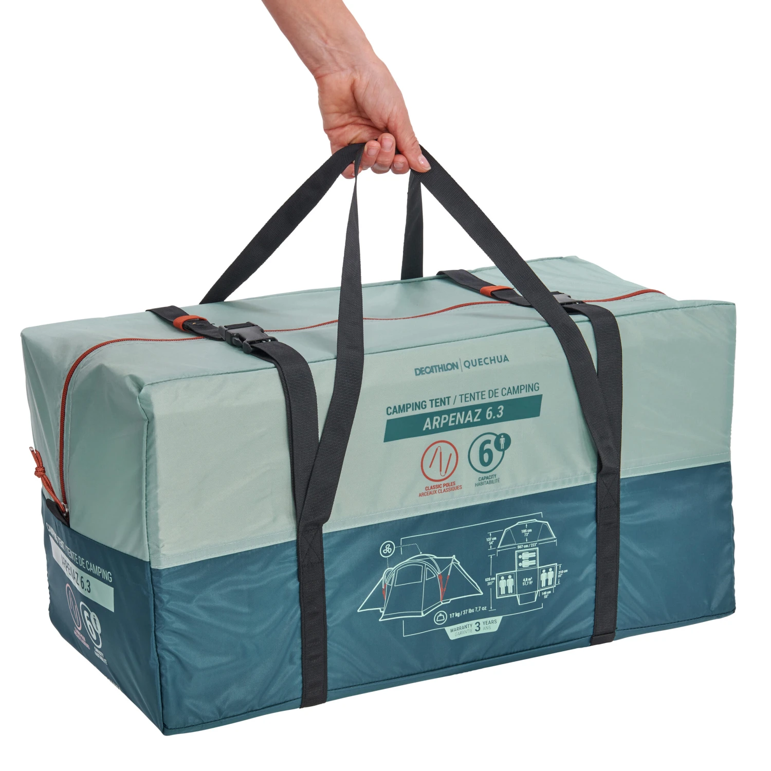 Our team of camping enthusiasts designed this pole-supported tent for six campers looking for three separate bedrooms and a spacious living area.This is a spacious tent with arches. Easy to assemble and comes with a large living area. The three bedrooms are perfect for camping trips with family or friends.