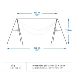 This camp bed can be combined with another of the same model to make a double bed. It is compatible with any camping mattress with a maximum width of 70 cm.